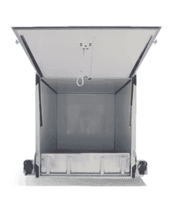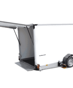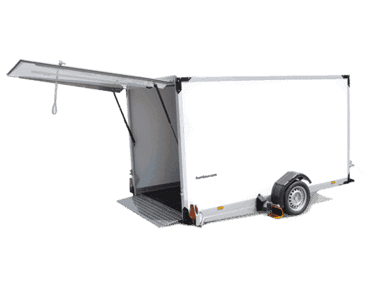 Der clevere Kofferanhänger mit intelligenter Absenkmechanik. Die Ladefläche kommt Ihnen beim Be- und Entladen entgegen. Es entsteht ein flacher Auffahrwinkel von nur 4 bis 6 Grad. Mit der integrierten Auffahrklappe und nach oben öffnender Heckklappe ist dieser Anhänger der perfekte Partner für bequemes Verladen. Ein robuster, rutschhemmender Boden und stabile Seitenwände mit GFK-Beschichtung sorgen für Langlebigkeit. Mit einer optionalen Wippe perfekt zum Transport von Motorrädern geeignet