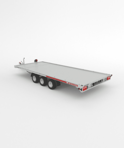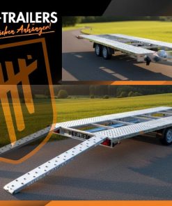 Moderner Fahrzeuganhänger aus Aluminium. Höhere Ladekapazität durch geringeres Gewicht, optimaler Auffahrwinkel, ausgeklügeltes Design für Sicherheit und komfortables, stabiles Fahren. Drei Arten von Transportflächen stehen zur Auswahl.